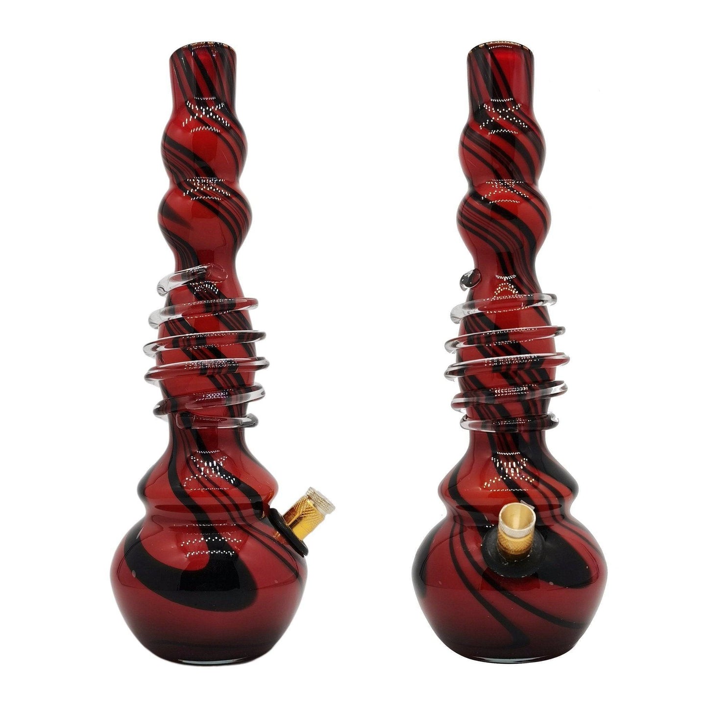 The 3G Black and Red Swirl Bong stands at 30cm and is the perfect size to get you relaxed and give you a smooth experience. Featuring an ergonomic swirl design around the middle of the bong. The waterpipe contains a coloured bonza stem/cone piece. This piece will be the perfect addition to your collection.