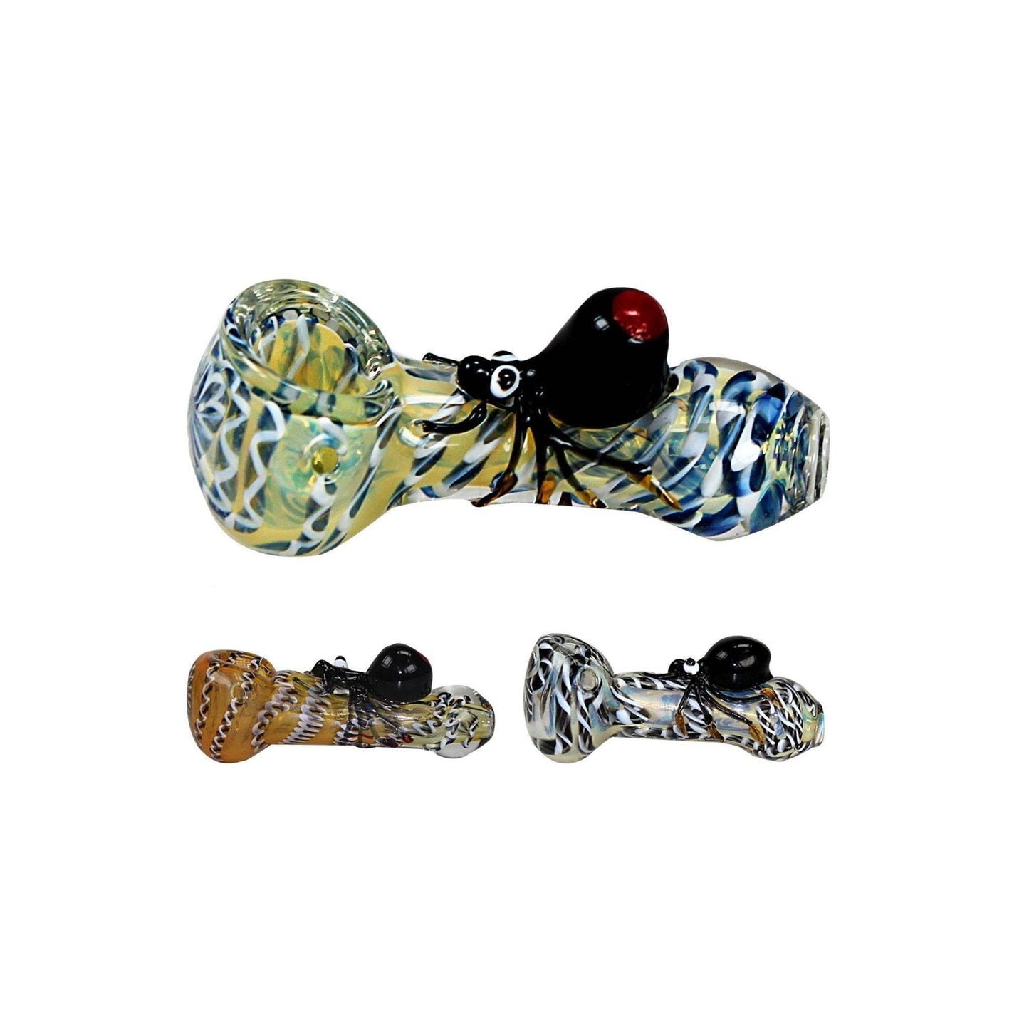 - 3G Glass pipe with a glass Spider molded above the pipe.