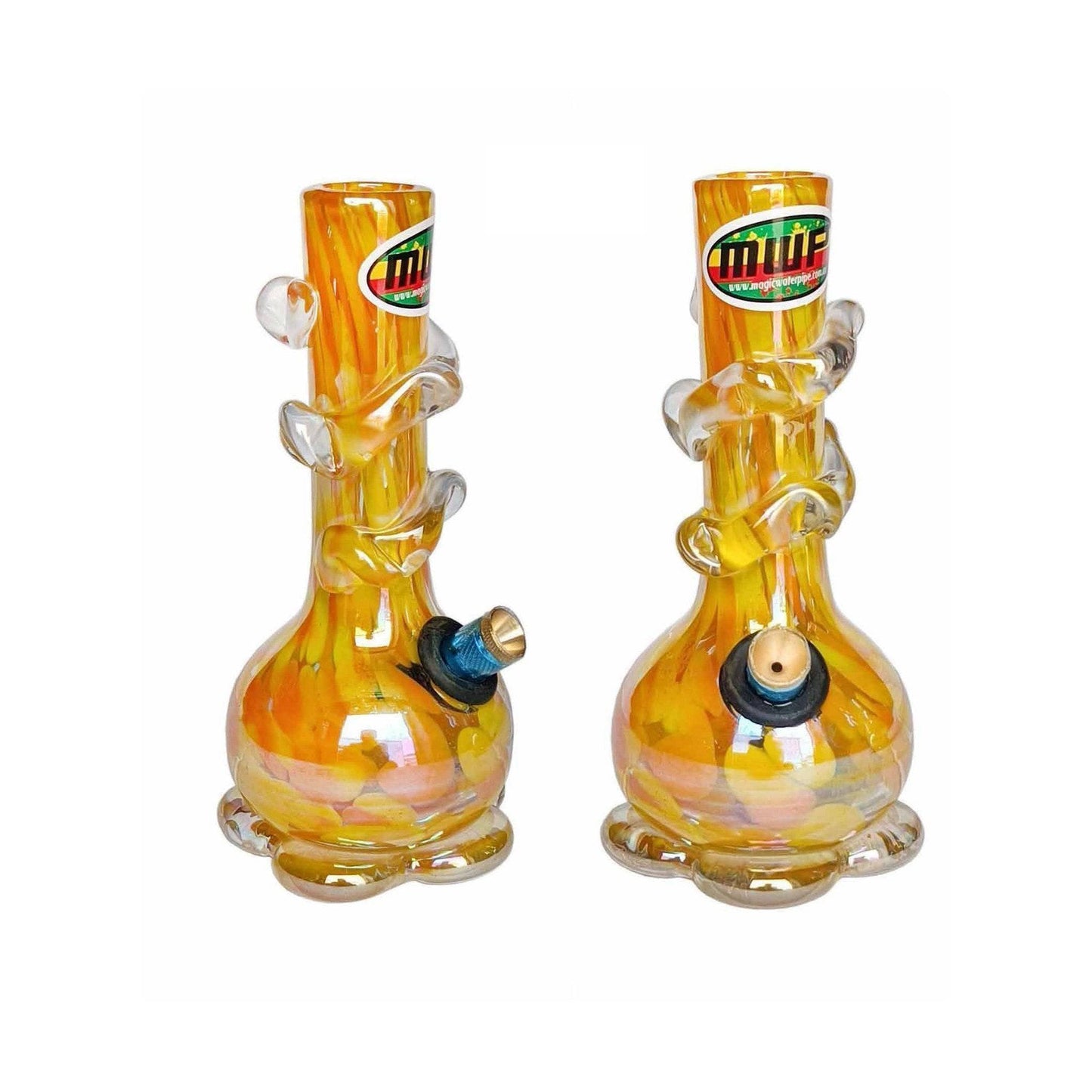 3G Glass Small Glass Bongs with Yellow Swirl Glass Shaped Design(20cm)