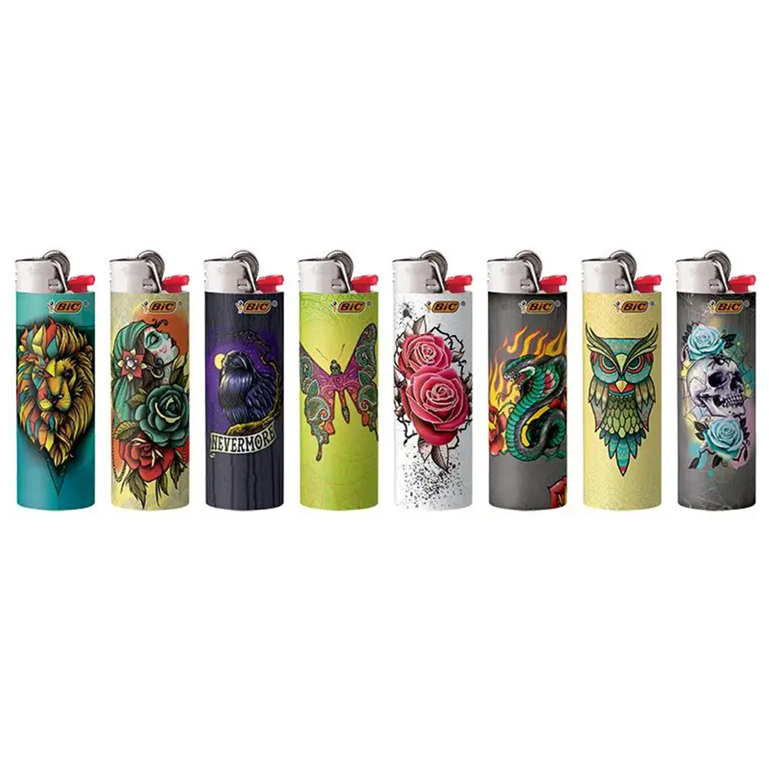 Discover the high-quality and unique BIC Special Edition Lighters from France. The TATTOOS SERIES offers a premium and stylish design, making it a must-have for any lighter collection. Made with expert craftsmanship and precision, these lighters are the perfect addition to any smoking experience.