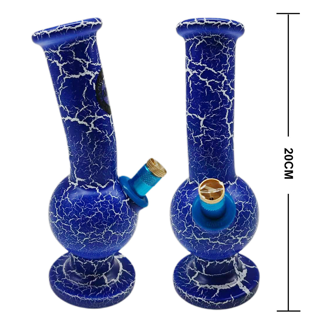The Bongfire Small Bent Bubble Bongs are crafted from high-quality glass and stand at a compact height of 20cm. These uniquely designed water pipes feature a blue and white crackle pattern, adding a touch of style to any collection. Their bent neck design offers added comfort during use, and their compact size makes them easy to handle and clean. Get your hands on this stunning piece online today!