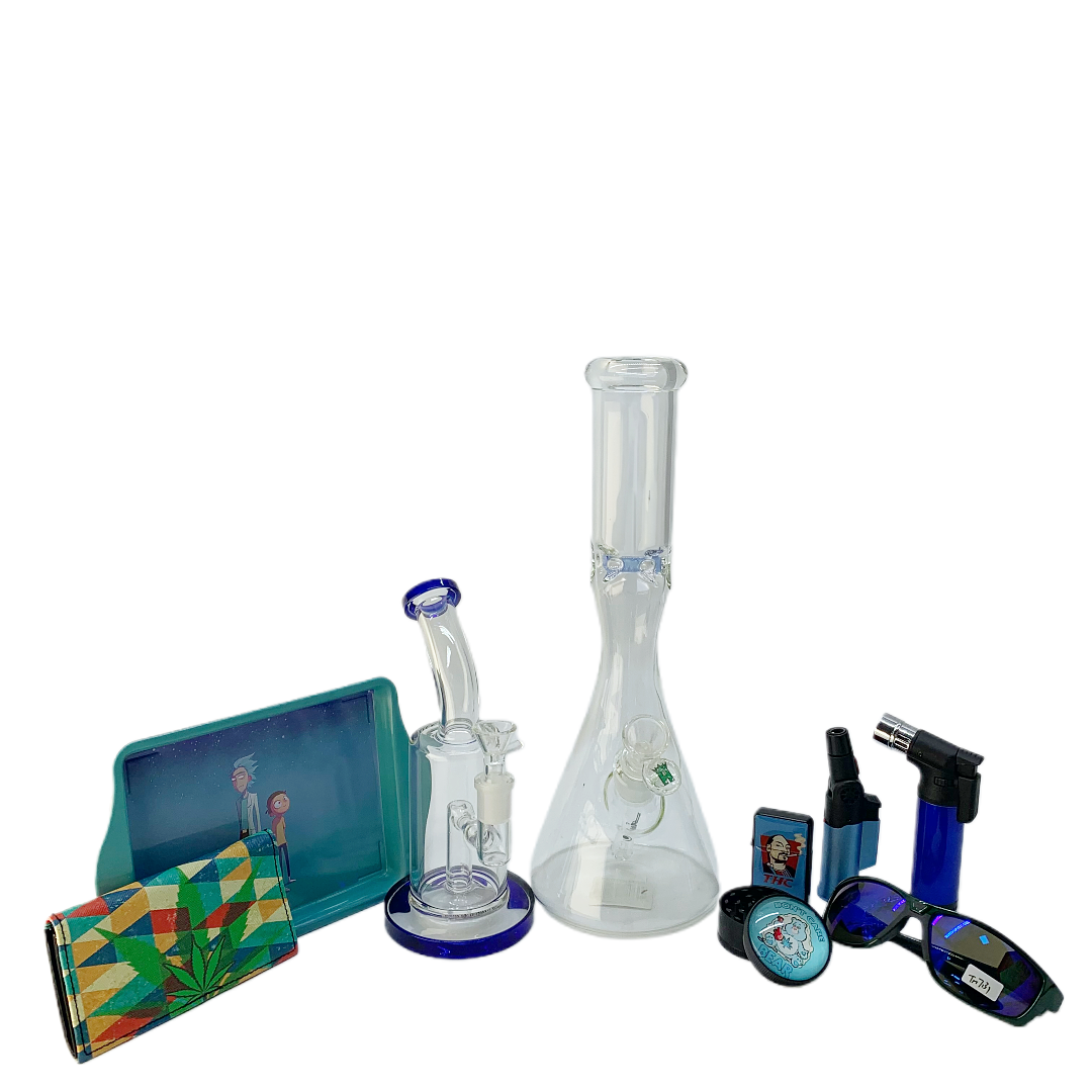Take your sessions to the next level with the Beaker & Stone Age Bong Bundle, a perfect combination of durability, fun, and functionality. Featuring the sturdy Thick Joint Beaker Bong (35cm) and the compact Stone Age Medium Glass Bong (20cm), this bundle offers versatility for any occasion. Paired with vibrant accessories like the Care Bear metal grinder and stylish sunglasses, it's the ultimate set for smokers who value quality with a touch of whimsy.