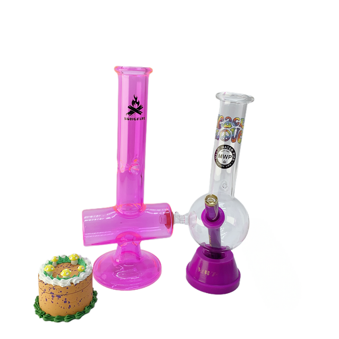 Elevate your smoking experience with the Pink Bliss Bong Bundle, a vibrant set designed for those who love a touch of pink in their collection. Featuring three stunning bongs in varying sizes and unique designs, and a fun 4-piece grinder with cake patterns, this bundle is a perfect mix of style and functionality.
