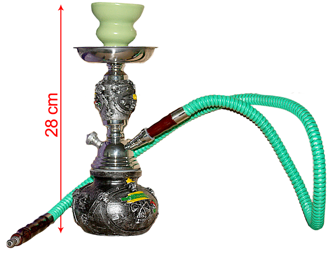 Discover the ultimate smoking companion with our 28cm Skull Base Hookah, a perfect blend of sturdy metal & resin stem design. This premium water pipe, ideal for glass bong aficionados, ensures smooth draws with its single hose feature, making it a standout choice among bongs online.
