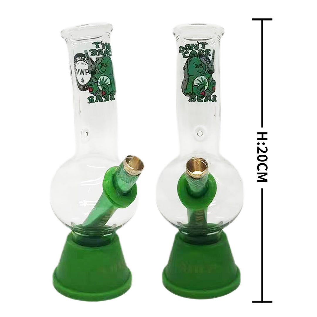 The Don’t Care Bear Small Bent Bubble Bong is a compact, fun piece made from high-quality glass and stands at a convenient 20cm. This unique bong features a playful, bent-neck design for easy handling and an eye-catching green bear decoration, perfect for adding a touch of personality to any collection. Equipped with a colored stem and cone piece, it’s designed for smooth, enjoyable sessions every time. Get yours online today!
