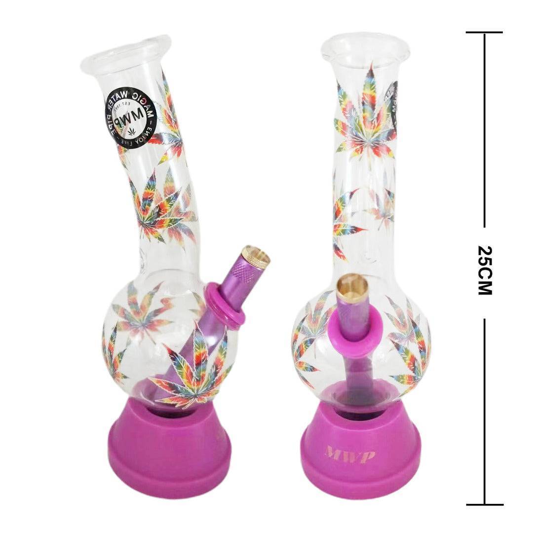 MWP Medium Bent Bubble Glass Bong with Leaf Design 25cm