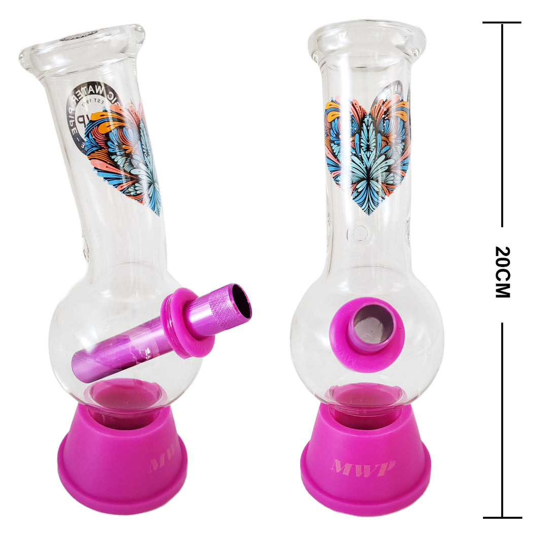 The MWP Small Bent Bubble 20cm Love Heart bong brings charm and function together in a compact design. Crafted from high-quality Pyrex Glass, this 20cm water pipe features a bent bubble shape that’s not only stylish but also delivers smoother, cooler hits. The Love Heart motif adds a playful and eye-catching touch, making this piece perfect for smokers who want to add personality to their collection. Finished with a colored stem and durable brass cone, it’s easy to clean and a joy to use—ideal for beginners and seasoned enthusiasts alike.