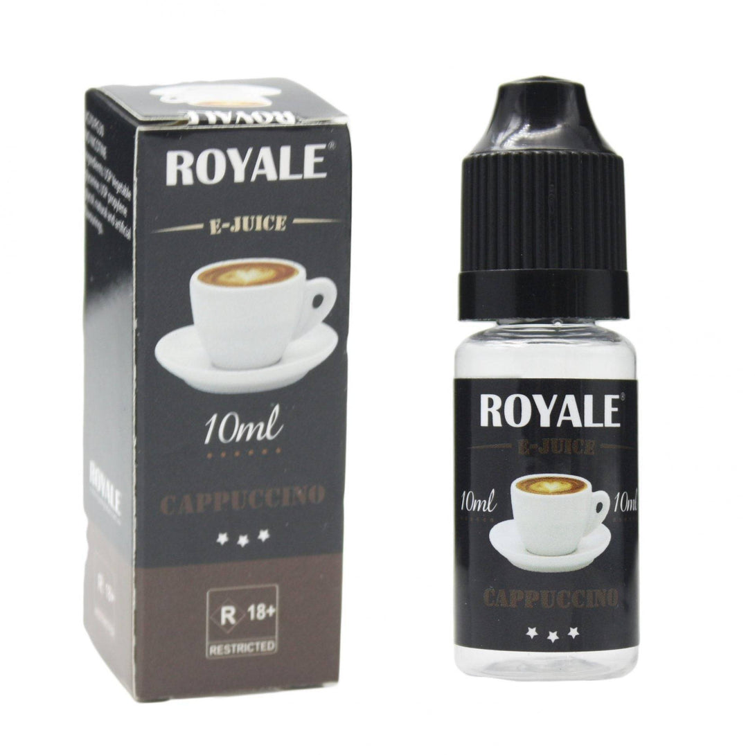 Indulge in the rich, dark coffee essence of Royale's Cappuccino e-juice, a perfect blend for glass bong enthusiasts. With a 70VG/30PG mix, it delivers smooth, thick clouds and a balanced flavor of coffee, vanilla, and cream. Available in 0mg nicotine and in 10ml or 30ml sizes, it's a top choice for a refined vaping experience.