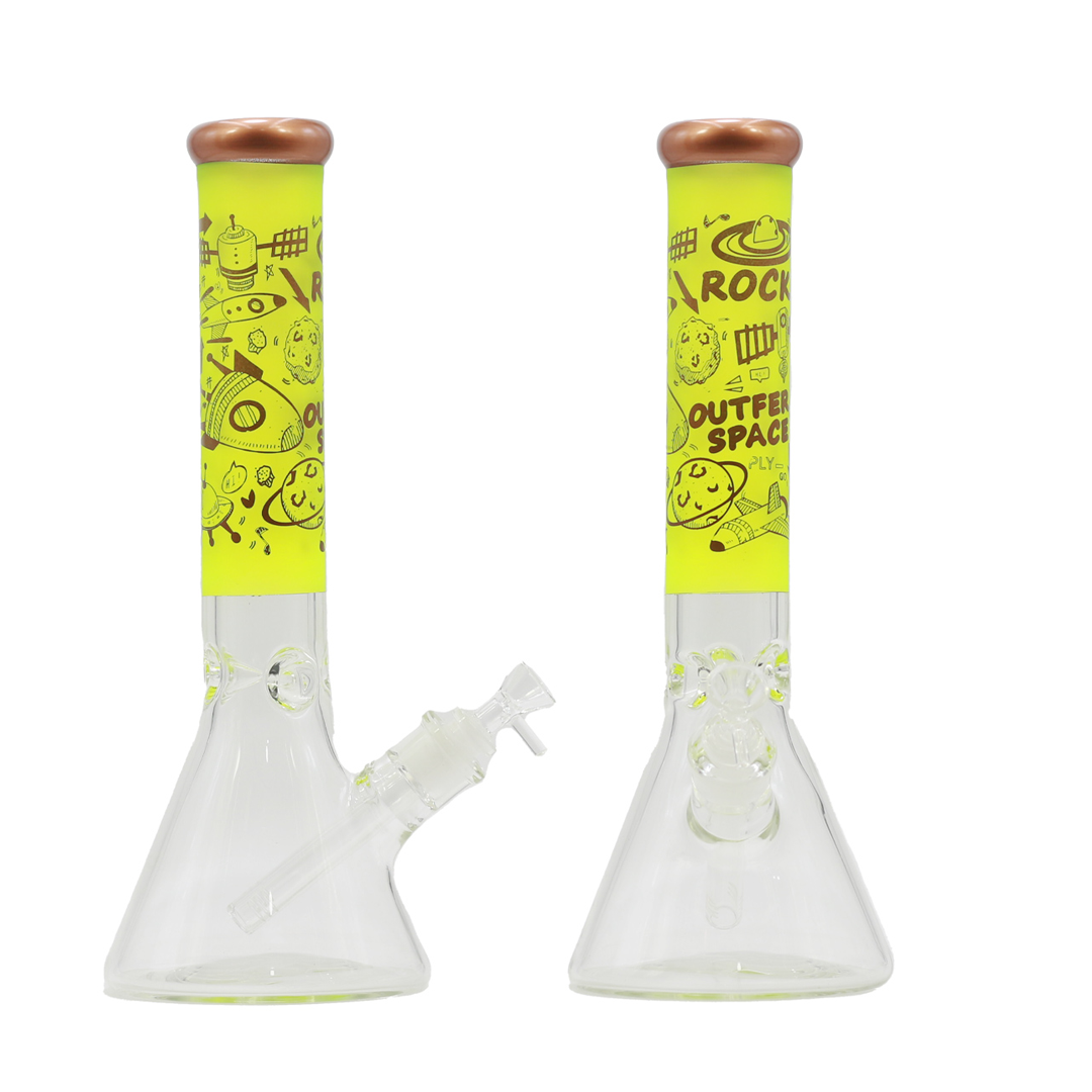 Stone Age Large Glass Bongs Clear Glass With Yellow Print Beaker 35cm
