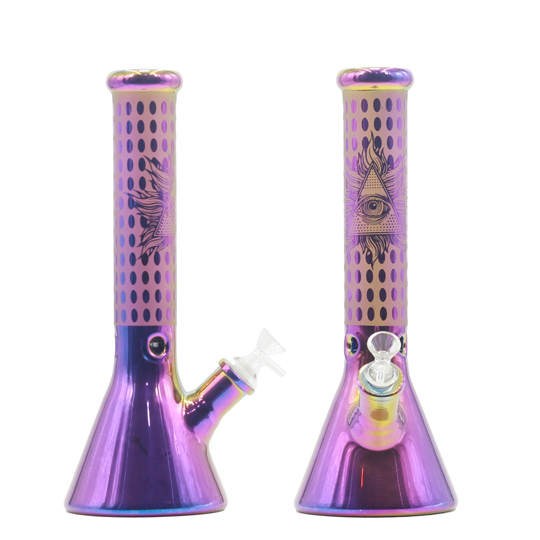 Experience smooth and powerful hits with our Stone Age Large Glass Bongs. Crafted with metallic purple accents and a unique eye design, this 38cm beaker bong is the perfect addition to any collection. Made with high-quality glass, it provides both style and durability for long-lasting use.