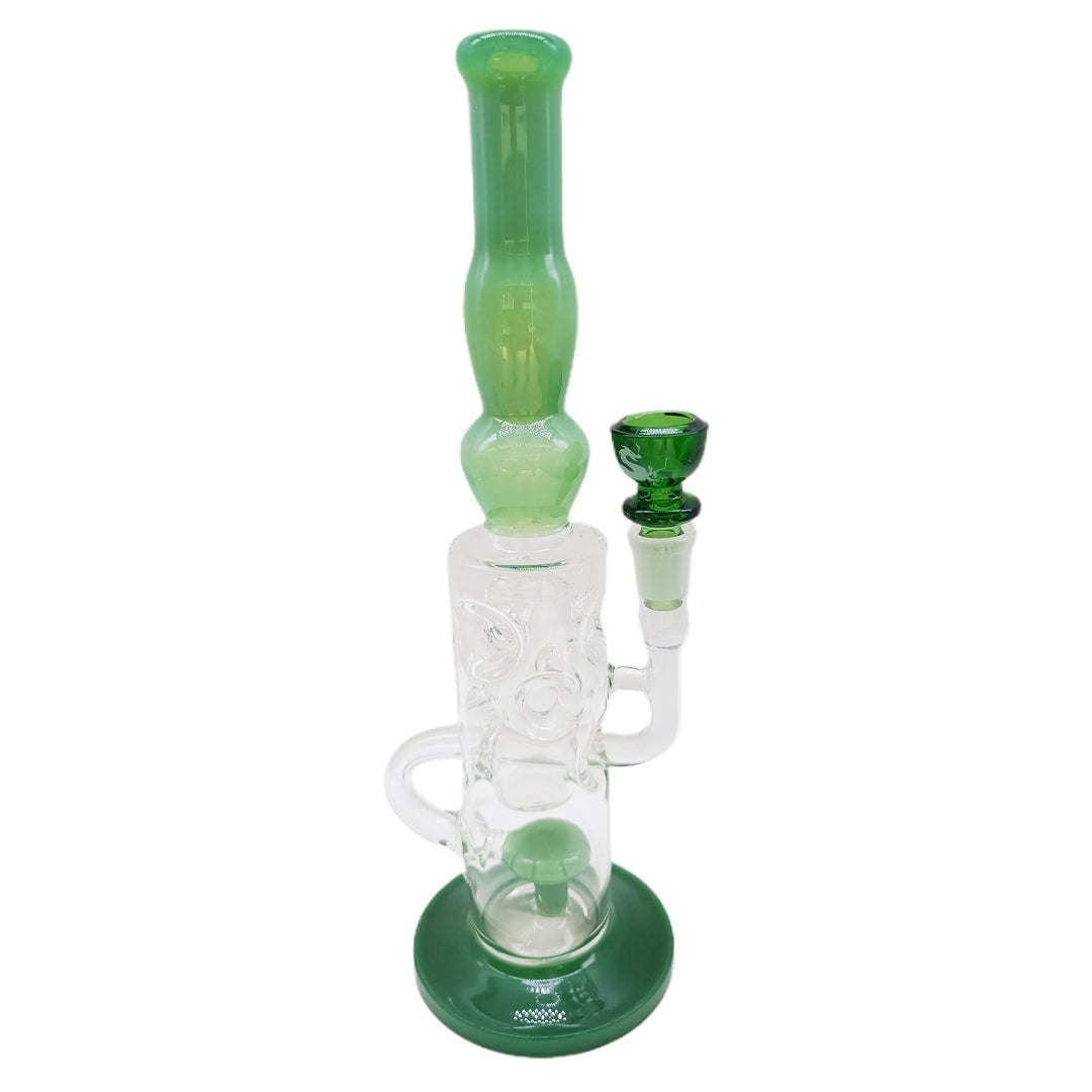 Crafted from high-quality borosilicate glass, the Billy Mate Bong is built to last while maintaining a sleek and modern aesthetic. Its vibrant green accents highlight the gripper sections and mouthpiece, providing a striking contrast to the crystal-clear body. The straight tube design ensures optimal airflow, while the wide base adds stability, making it perfect for everyday use.