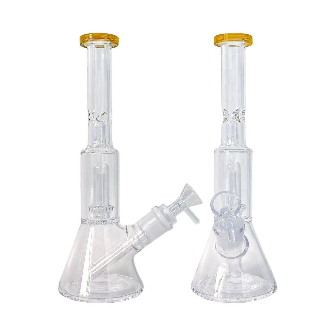 Stone Age Medium Glass Bongs Beaker with Yellow Mouthpiece (26cm)