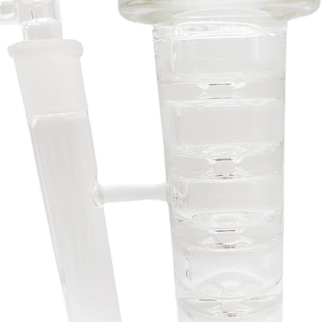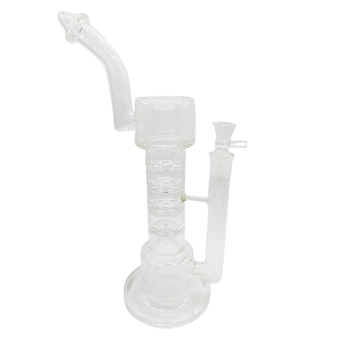 The Pure Flow Inline Percolator Glass Bong 38cm is a sleek, modern smoking device designed for users who value both performance and minimalist aesthetics. Standing at 38cm tall, this bong features an inline percolator that efficiently filters smoke, providing a smoother and cooler hit with enhanced purification. Made from crystal-clear borosilicate glass, the bong highlights its clean lines and transparent beauty without added color, emphasizing its pure and refined look. The straight tube design is complemented by an ergonomic angled mouthpiece that ensures comfort during use, while the wide, sturdy base provides excellent stability for safe handling. With a 19mm joint size, this piece is compatible with a variety of accessories, allowing users to customize their experience. Compact yet effective, the Pure Flow Inline Percolator Bong offers a pristine and refreshing smoking experience, perfect for both beginners and connoisseurs alike.