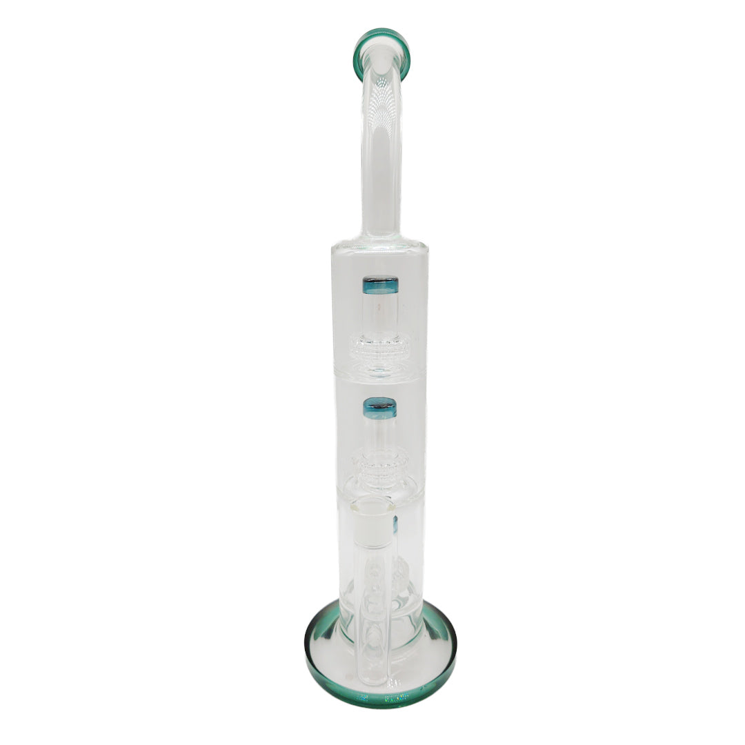 The Weedo Triple Matrix Glass Bong 45cm is built for serious smokers who crave smoothness, power, and precision in every session. Standing tall at 45cm, this bong features three stacked matrix percolators, delivering next-level filtration and ultra-smooth hits. Designed with a 19mm joint size, it's ideal for those who enjoy a more substantial smoking setup. Crafted from thick, high-quality borosilicate glass, this piece offers both durability and sophistication. With its clear body and modern architecture, it's perfect for showcasing function and design.